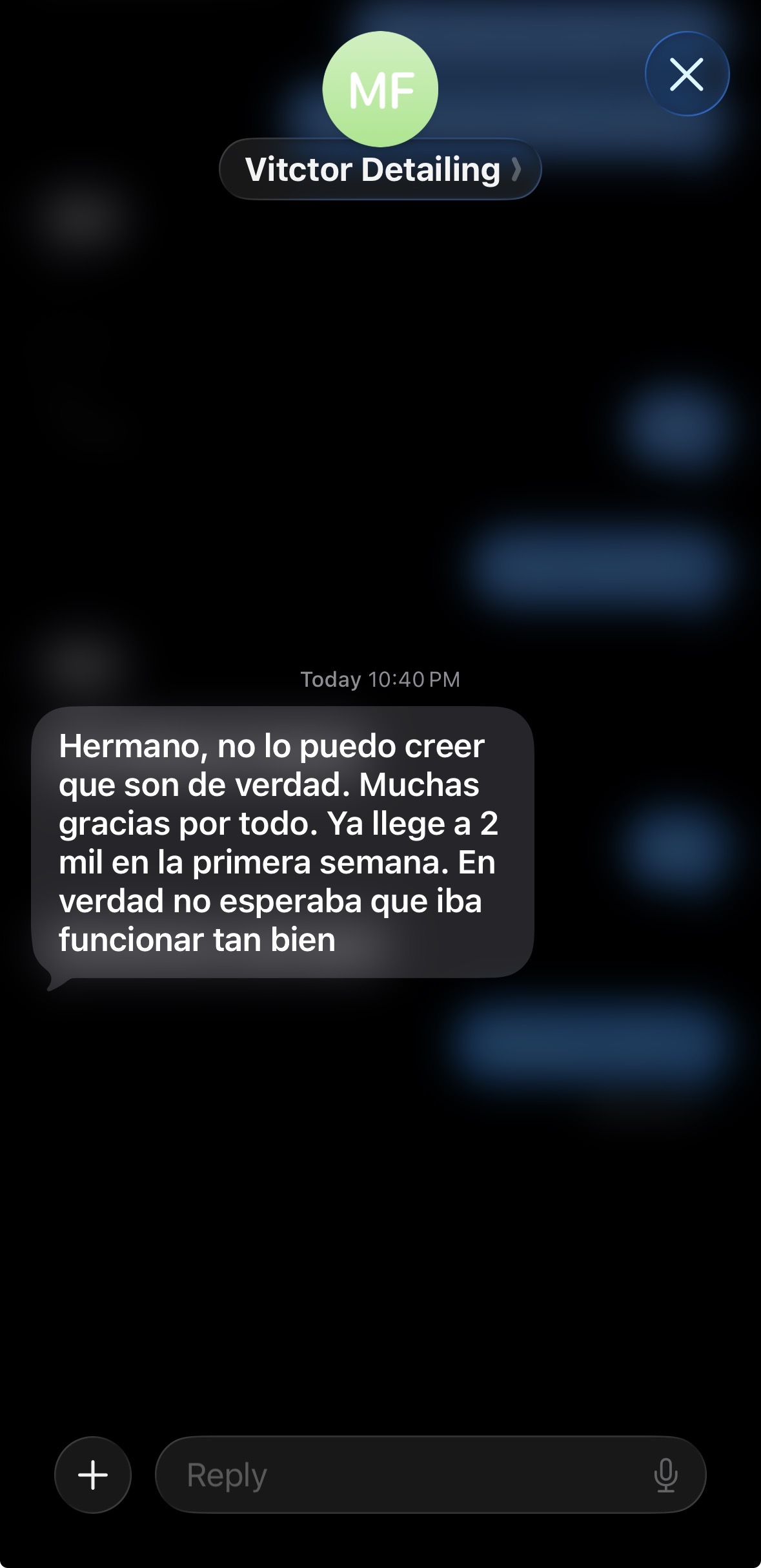 Victor alcanzó más de $2,000 en su primera semana trabajando con nosotros. Resultados reales para detailers reales.